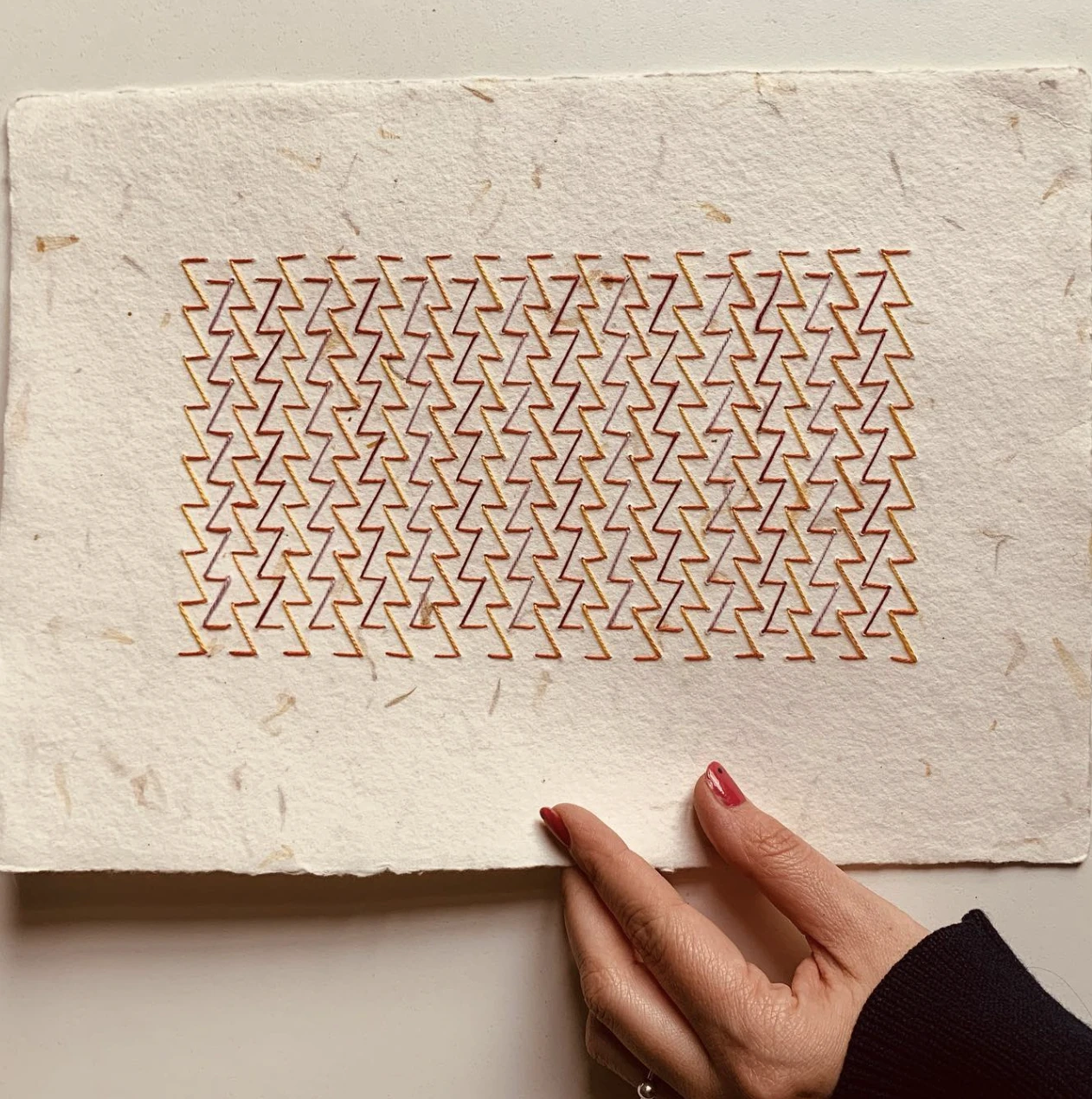 En este proyecto que sigue creciendo busco relacionar el sashiko con la pintura. Comprender cómo el color atraviesa las puntadas y cómo acercarse a la abstracción desde un patrón geométrico.